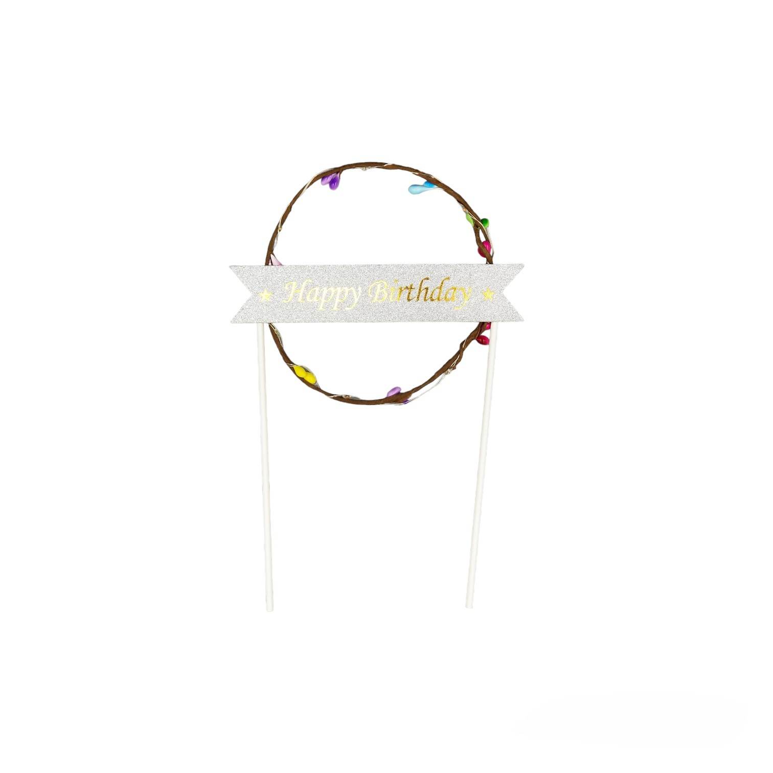 Διακοσμητικό τούρτας topper “Happy birthday” με φωτάκια led σε σχήμα στεφάνι