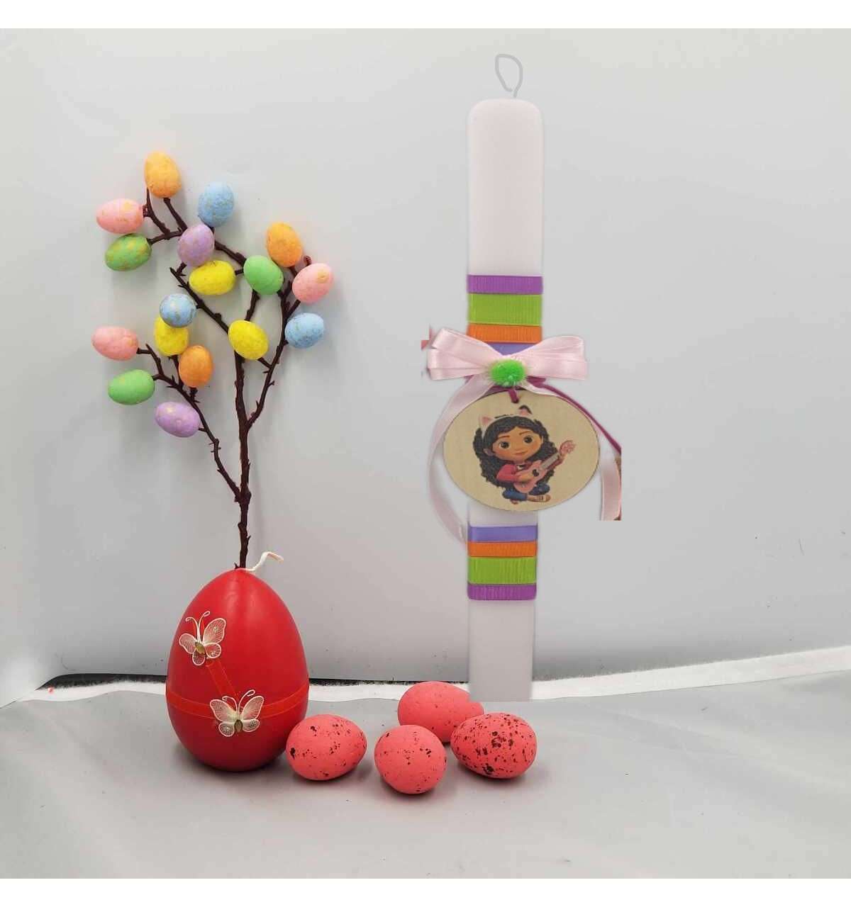 Χειροποίητη λαμπάδα Gabbys Dollhouse με ξύλινο διακοσμητικό!
