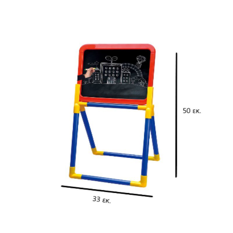 Μαυροπίνακας με κιμωλία από την μία πλευρά και μαγνητικός πίνακας από την άλλη, πάνω σε σταντ για να μπορεί να γράψει ή να ζωγραφίσει ότι του αρέσει.