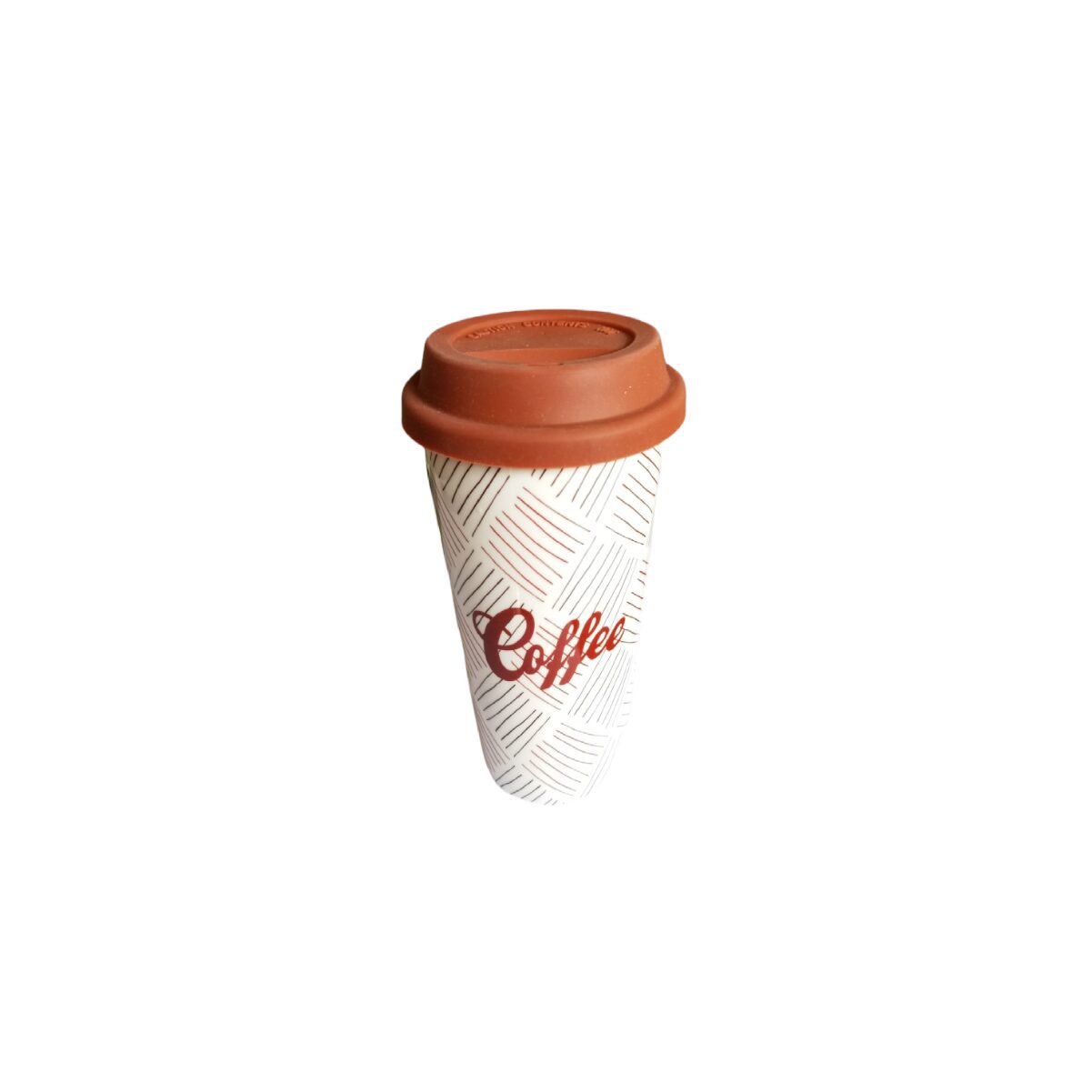Κούπα πορσελάνινη με καπάκι σιλικόνης coffee 400ml.